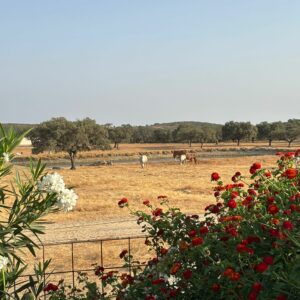 La casa rural se encuentra en medio de un paisaje deslumbrante, donde el Toro de Lidia y el Cerdo Ibérico conviven en armonía, convirtiéndose en guardianes de nuestro legado cultural. Desde aquí, los huéspedes podrán contemplar la majestuosidad de estos animales mientras caminan graciosamente entre las verdes colinas y son acariciados por la suave brisa que acaricia su pelaje.
