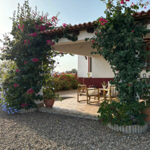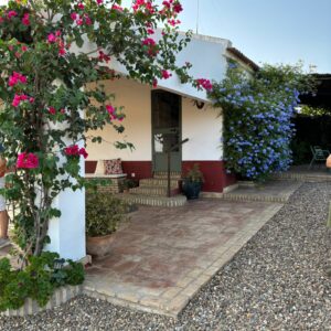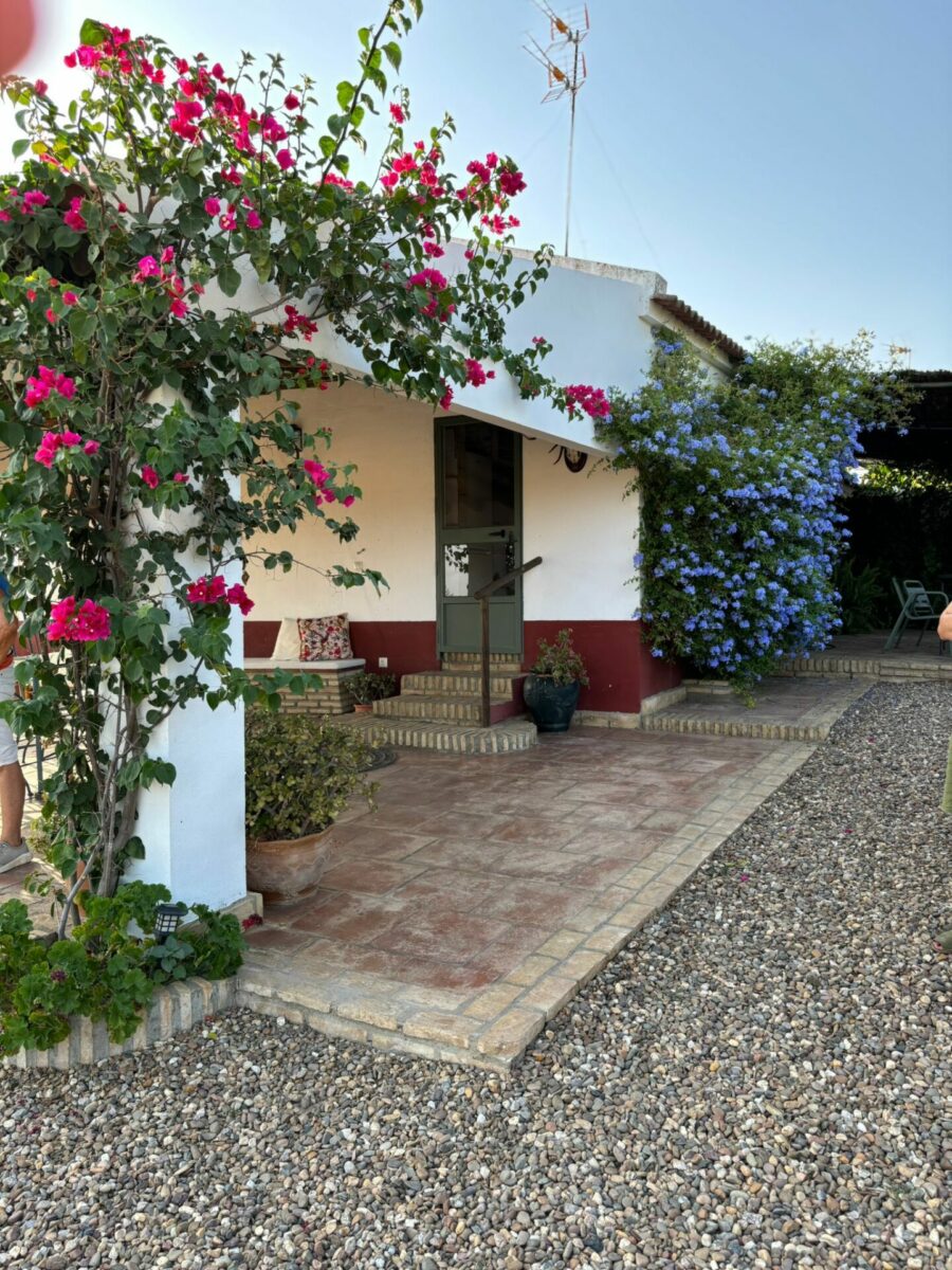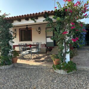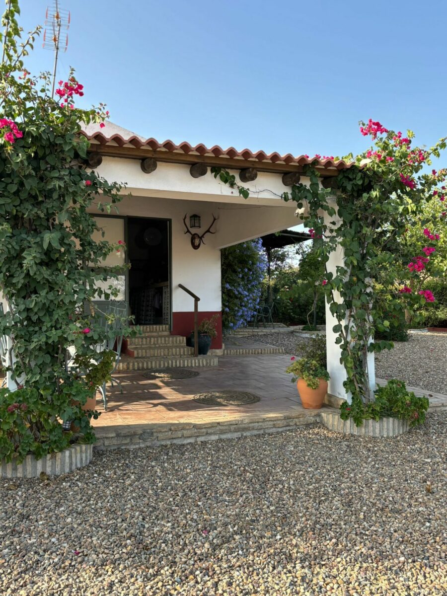 La casa rural en Sevilla le brinda la oportunidad de disfrutar de un entorno natural privilegiado, y además cuenta con diversas comodidades que harán de su estancia una experiencia inolvidable. Nada más llegar, te recibirá un acogedor porche de entrada, equipado con una mesa alta para que puedas disfrutar del aire libre y contemplar el bello entorno que te rodea, una ganadería de toros de lidia y un paisaje que te dejará totalmente anonadado.