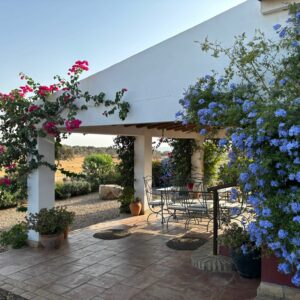 La casa rural en Sevilla te brinda la oportunidad de disfrutar de un entorno natural privilegiado, y también cuenta con diversas comodidades que harán de tu estancia una experiencia inolvidable. Además, la casa dispone de una amplia terraza con dos zonas distintas, desde donde podrás deleitarte con vistas panorámicas de la impresionante dehesa sevillana y de esta preciosa ganaderia en Sevilla. Si eres amante de la buena comida al aire libre, te encantará saber que la casa también cuenta con una barbacoa de ladrillo. Así podrás disfrutar de deliciosas parrilladas al aire libre junto a tus seres queridos, creando recuerdos inolvidables mientras saboreas exquisitos manjares en medio de la naturaleza.