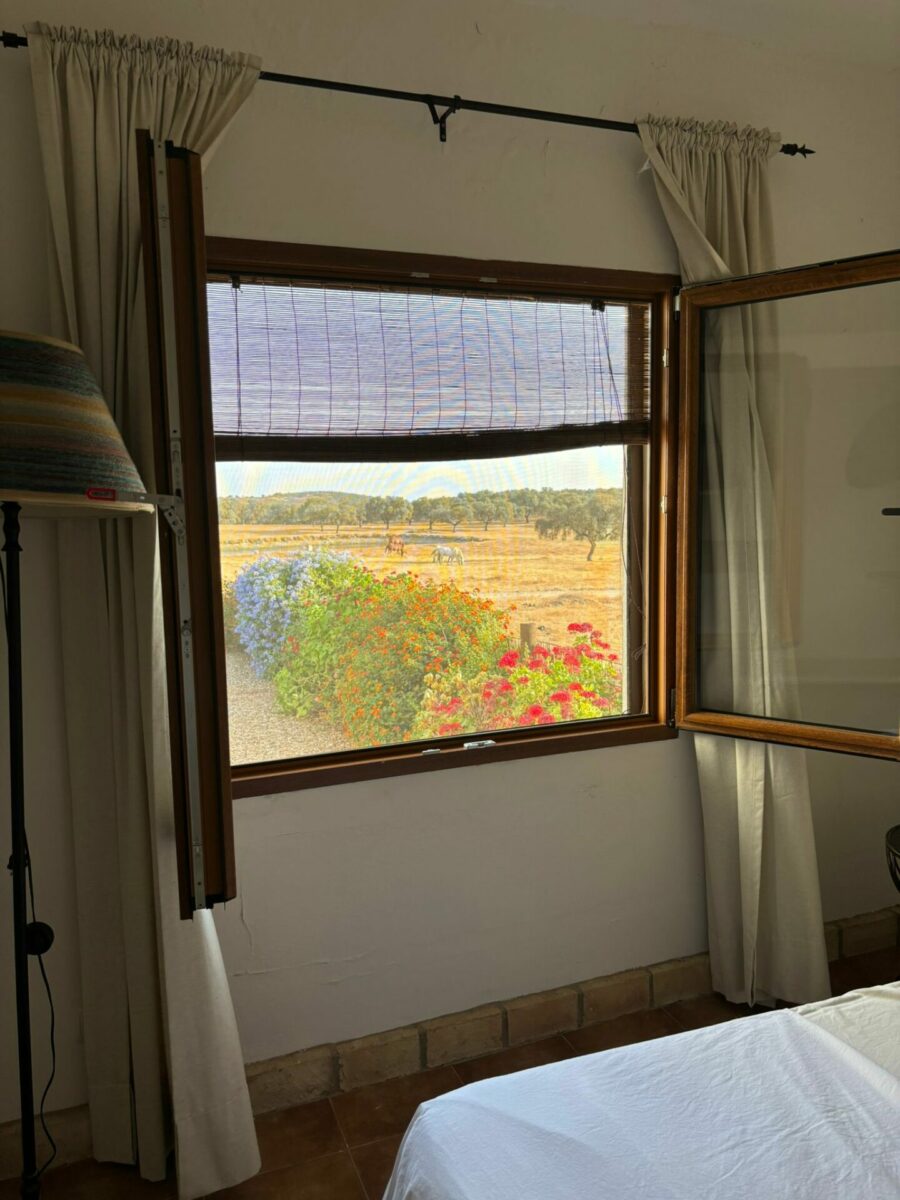 Una de las maravillas de este segundo dormitorio son las espectaculares vistas que podrá contemplar desde su ventana. Imagínese despertarse por la mañana y disfrutar de un impresionante paisaje que le conecta con la belleza natural de la dehesa sevillana. Estas vistas te regalarán momentos de serenidad y tranquilidad, permitiéndote sumergirte en la magia del entorno.