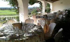 The terrace of our country house is perfect for banquets, offering panoramic views of the bullring and meadow; an intimate space ideal for spring and fall events.
